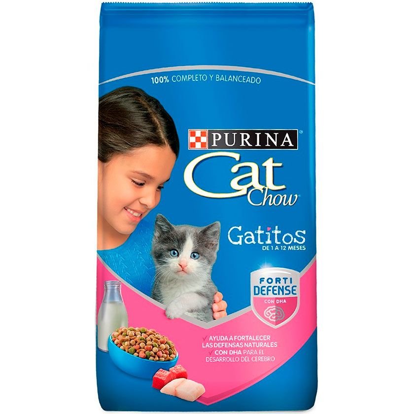 Maíz amarillo, gluten de maíz, derivado de harina de pollo y/o harina de carne y hueso de res y/o cerdo, pasta de soya, arroz, grasa animal (res y/o pollo y/o cerdo) estabilizada con antioxidantes (BHA & BHT y/o TBHQ y/o tocoferoles), trigo, harina de pescado, digesto animal (hidrolizado de hígado de pollo y/o cerdo), ácido fosfórico y/o bisulfato de sodio, carbonato de calcio, sal, leche en polvo, cloruro de colina, cloruro de potasio, taurina, DL-metionina, L-lisina, sulfato de zinc, proteinato de zinc, sulfato ferroso, suplementos vitamínicos (A, D-3, E, B-12), suplemento de riboflavina, niacina, pantotenato de calcio, sulfato de manganeso, proteinato de manganeso, biotina, mononitrato de tiamina, ácido fólico, sulfato de cobre, proteinato de cobre, clorhidrato de piridoxina, complejo sódico de bisulfito de menadiona (fuente de actividad de vitamina K), iodato de calcio, selenito de sodio, colorantes (rojo 40, amarillo 5, amarillo 6, azul 2, dióxido de titanio).