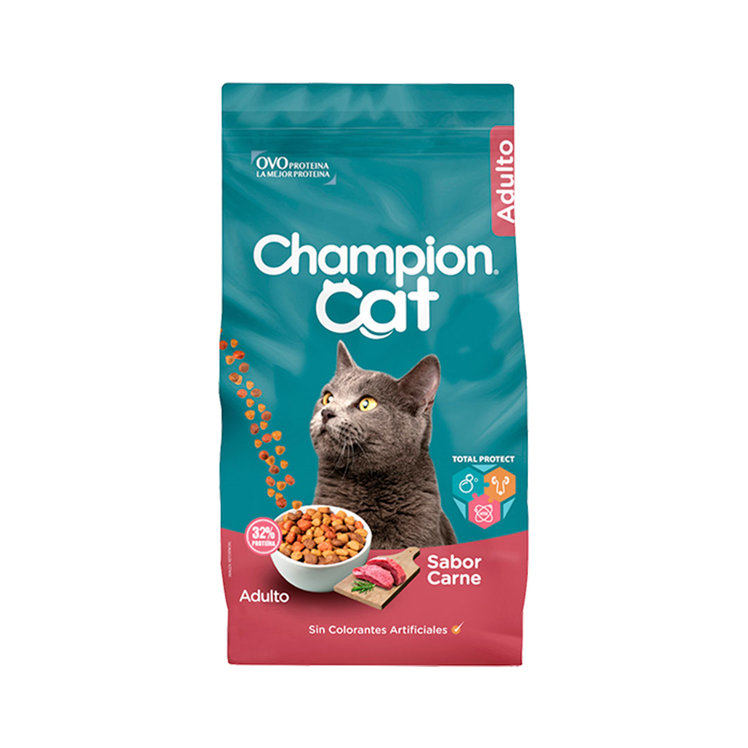 Champion Cat es un delicioso alimento, 100% completo y balanceado, formulado con ingredientes seleccionados, ofreciendo los mejores beneficios que tu gato necesita para su salud y bienestar.
