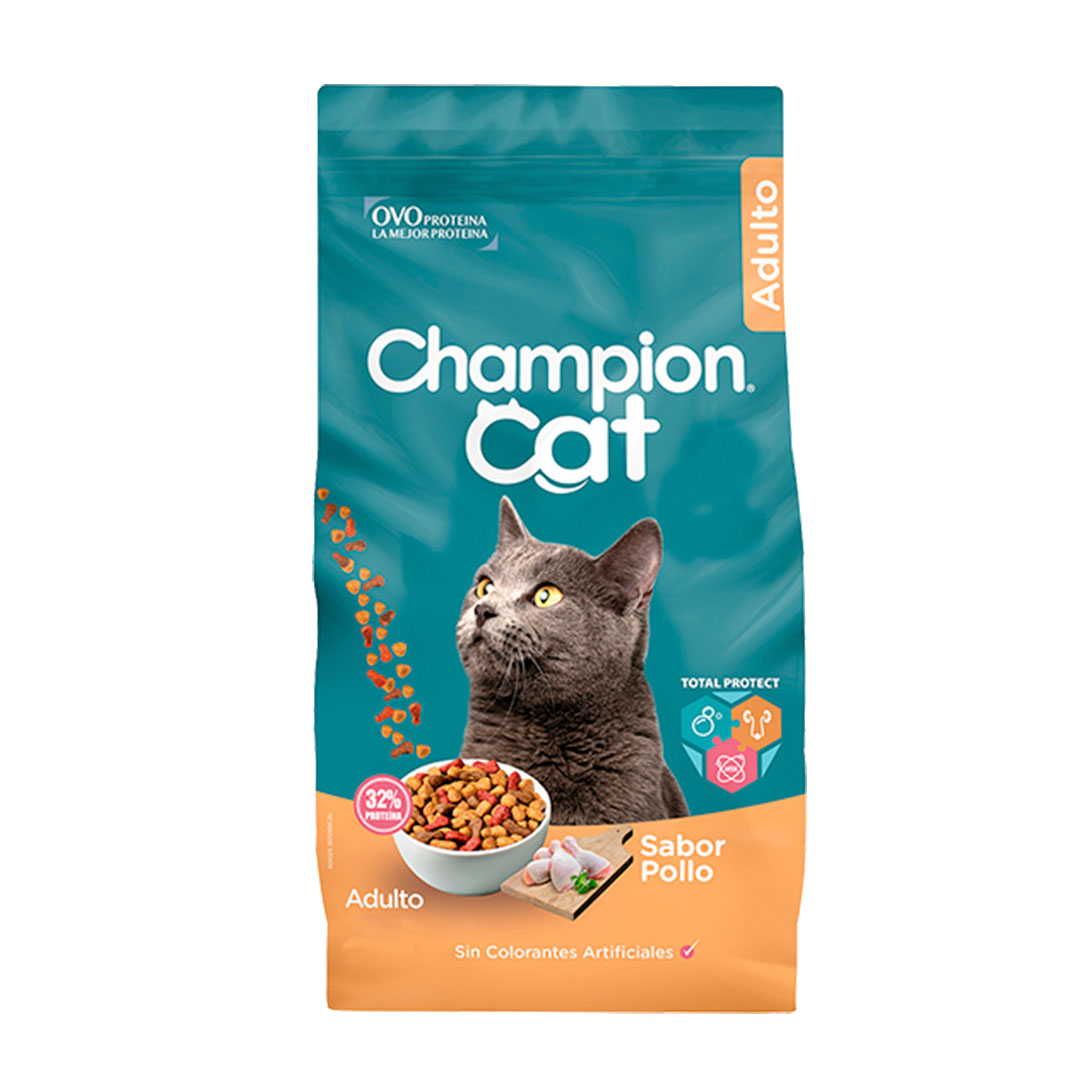 Que tu gato crezca sano y feliz, es clave para los siguientes años de su vida, por eso Champion Cat adulto con Sistema Total Protect tiene una exclusiva combinación de Antioxidantes Naturales, Ovoproteína, Vitaminas y Minerales que ayudan a mantener a tu gato en óptimas condiciones de salud, fortaleciendo su musculatura, optimizando sus defensas y manteniendo su tracto urinario saludable.