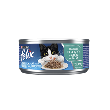 Purina® Felix® Filetes de Pescado y Atún es una deliciosa combinación de mar en unos jugositos filetes que harán que tu gatito haga las cosas más astutas para que se lo des todos los días.
