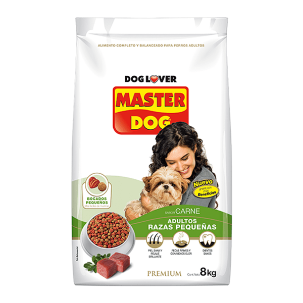 Master Dog para perros de raza pequeña, contiene bocados adecuados para el tamaño y fuerza de su mandíbula, lo que facilita su consumo.