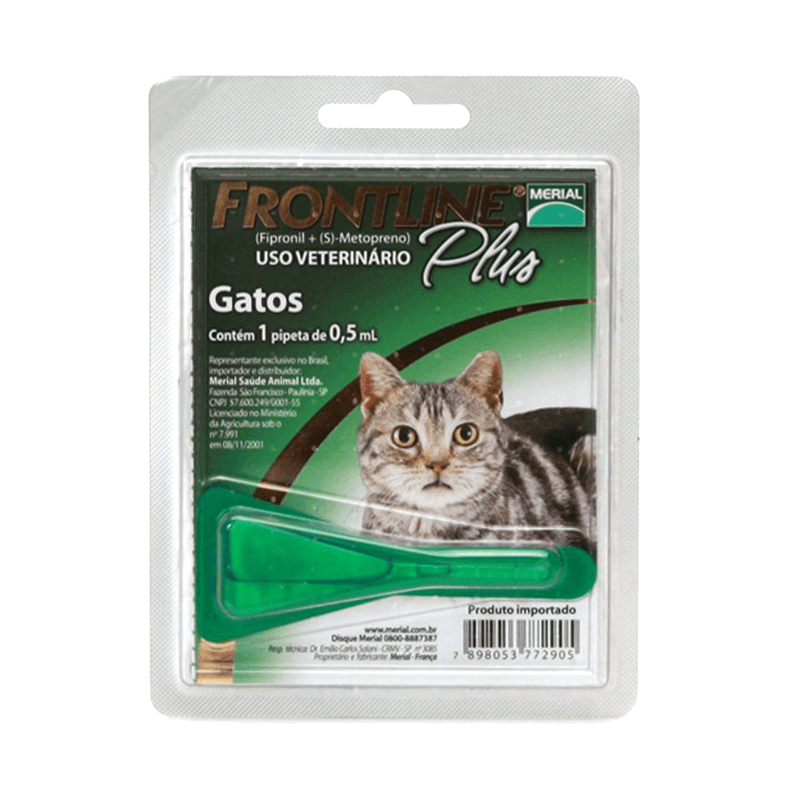 Frontline Plus es una pipeta para gatos formulada en base a dos moléculas: El fipronil, que acaba con las formas adultas que hay sobre el animal (pulgas, garrapatas y piojos), y una molécula IGR, el S-metopreno, que elimina los huevos y las larvas de las pulgas y actúa sobre las formas inmaduras que hay en el ambiente, protegiendo de las reinfestaciones.