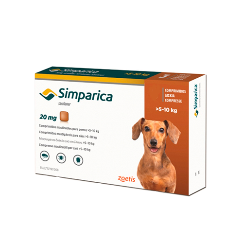 Simparica es un antiparasitarioexterno de vía oral para el tratamiento y control de infestaciones por pulgas, garrapatas y sarna.Puede usarse como parte de una estrategia de tratamiento para el control de la Dermatitis por Pulgas (DAPP).