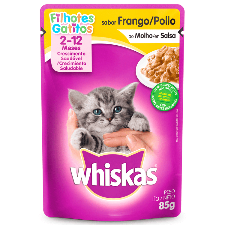 El Sobrecito Whiskas® (de 2 a 12 meses) es alimento húmedo nutricionalmente completo y balanceado, elaborado a base de exquisitos trocitos de pollo cocidos al vapor en una deliciosa salsa: